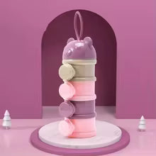 Les 4 boîtes de lait en poudre sont conçues pour être empilées, ce qui permet de gagner de l'espace sur le plan de travail ou dans les placards. Chaque compartiment de lait en poudre est équipé d'un bec verseur pratique pour un dosage facile et sans gaspillage. Le bouchon assure une fermeture hermétique de la boîte doseuse préservant la fraîcheur du lait en poudre.